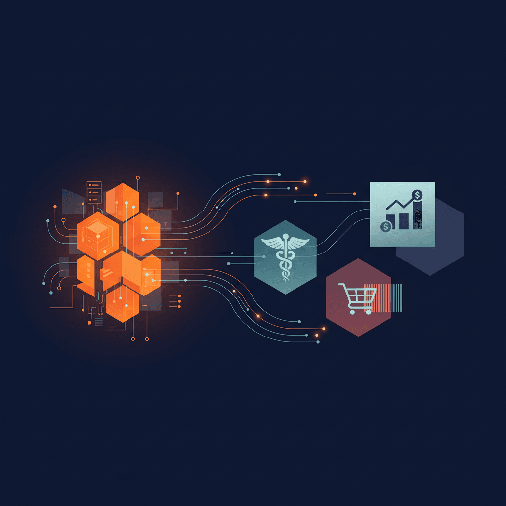 Healthcare and finance grow in tandem, but slower. In mid-2025, healthcare reaches 340 units; finance, 305 units. Both have nearly quadrupled their 2020 levels, but governance and legacy infrastructure limit velocity. Healthcare faces data silos and compliance. Finance balances innovation with risk management.